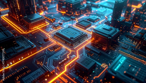 Fototapeta premium Futuristic circuit board, viewed from a high angle