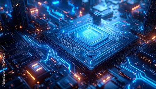 Fototapeta premium Futuristic circuit board, viewed from a high angle