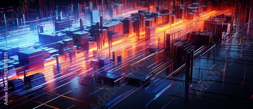 Fototapeta premium Futuristic circuit board with flowing data streams, vibrant colors, tech...