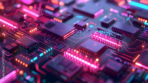 Fototapeta premium Futuristic circuit board with glowing neon lights