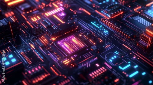 Fototapeta premium Futuristic Circuit Board with Neon Lights.