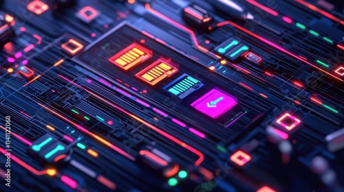 Fototapeta premium Futuristic Circuit Board with Neon Lights and Digital Patterns