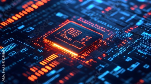 © Phichaphat, Fototapeta premium Futuristic Circuit Board with Red Glow