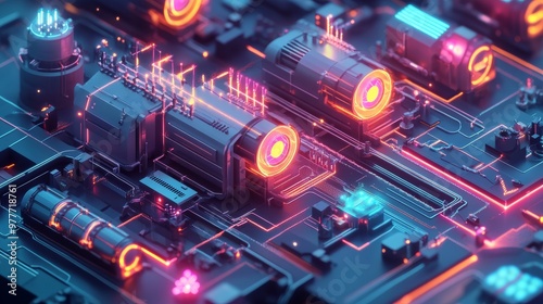 © Phatharaporn, Obraz premium Futuristic Circuitry with Glowing Lights.