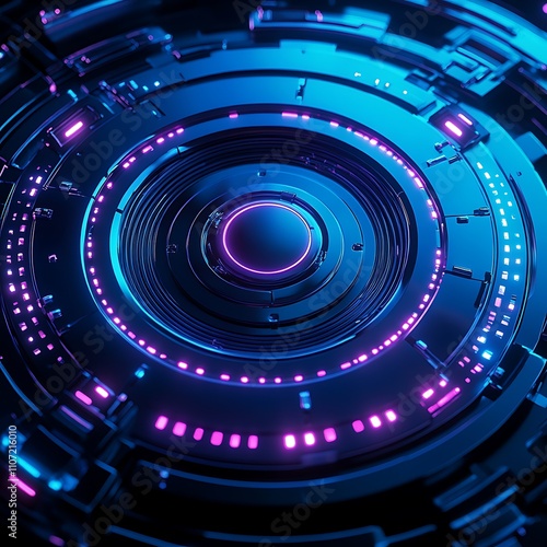 Obraz premium Futuristic Circular Design with Neon Lights and Abstract Patterns in Blue and Purple Colors
