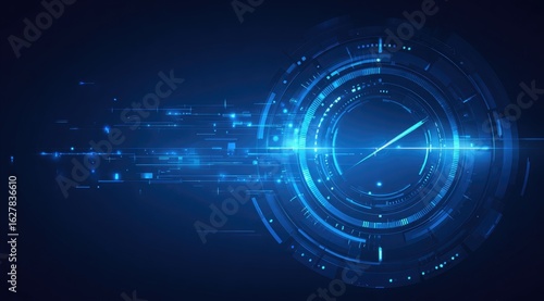 Obraz premium Futuristic, circular digital interface with glowing blue lines and light trails