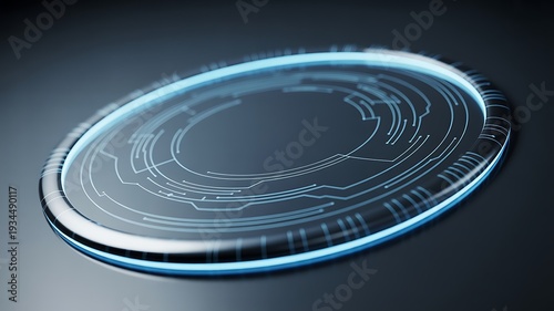 © Sojib_Islam, Obraz premium Futuristic Circular Interface with Blue Glowing Circuitry Lines technology digital