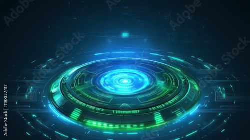 Obraz premium Futuristic circular interface with glowing elements.