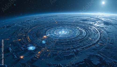 Obraz premium Futuristic Circular Landscape with Bright Orbital Elements