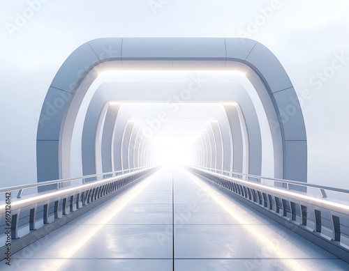 Obraz premium Futuristic Circular Plaza: Minimalist Design with Glowing Edges and Soft...