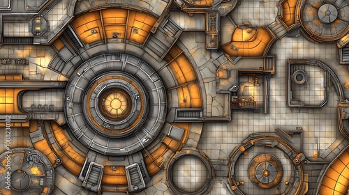 Obraz premium Futuristic circular tech structure top-down view.