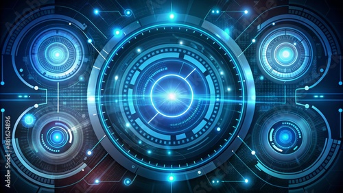 Obraz premium Futuristic circular user interface featuring glowing heads-up display rounds,...