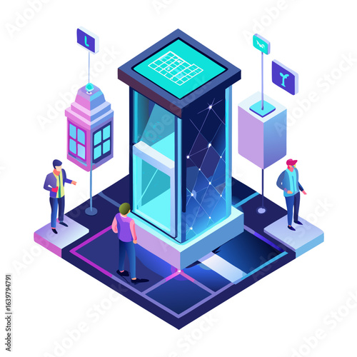 Fototapeta premium Futuristic city bus stop with interactive holographic timetable