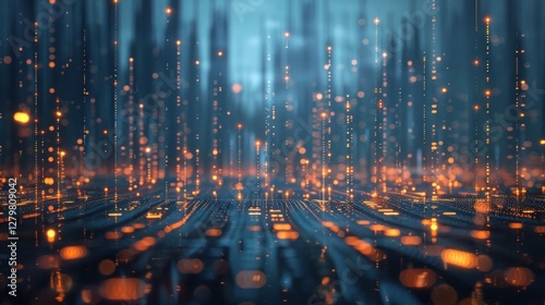 © Gilang, Fototapeta premium Futuristic city data network graphic; digital lines connect city. Use Presentation background