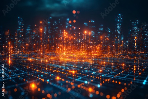 © Jikno, Fototapeta premium Futuristic city glow in digital rendering