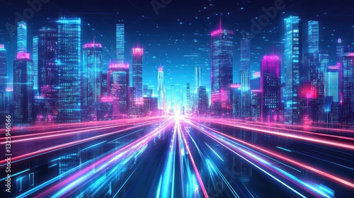 © Lesuna, Fototapeta premium Futuristic city highway at night