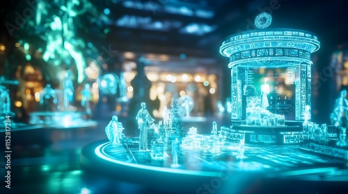 Obraz premium futuristic city hologram, ar shopping - metaverse & virtual worlds