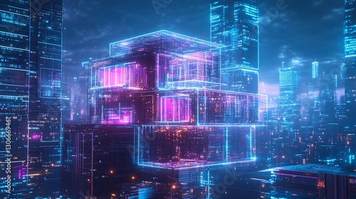 © rashyn, Fototapeta premium Futuristic city hologram building night cityscape