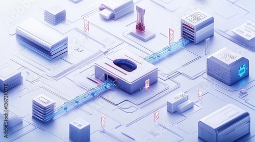 Obraz premium Futuristic city, interconnected buildings, digital network, abstract background