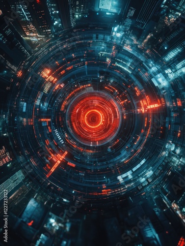 © Goncharenko, Fototapeta premium Futuristic City Night with Red Light