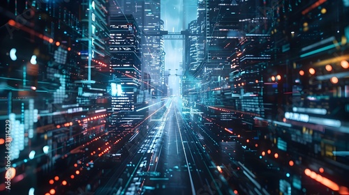 Fototapeta premium Futuristic City of Digital Narcotics: A Virtual Marketplace for Synthetic Dowry