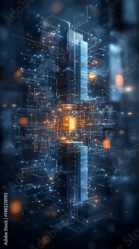 © RETNO, Fototapeta premium Futuristic city of interconnected technology