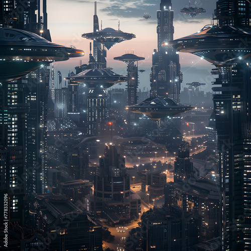 Fototapeta premium Futuristic city sci fi alien planet, future city background, Illustration for...