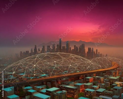 © barber, Fototapeta premium Futuristic city skyline at dawn (3)