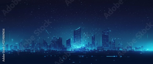 Fototapeta premium Futuristic city skyline at night.