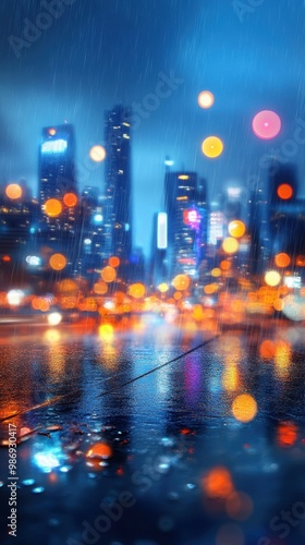 Fototapeta premium Futuristic city skyline at night, neon lights reflecting off glass skyscrapers