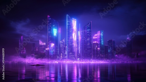 Fototapeta premium Futuristic city skyline featuring vibrant holographic displays and innovative...