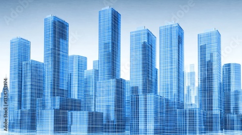 Obraz premium Futuristic city skyline, glass skyscrapers, architectural design, background