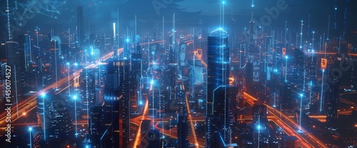 © BilalKhan, Obraz premium Futuristic_city_skyline_glowing
