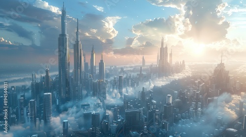 © Attasit, Fototapeta premium Futuristic city skyline with a well-integrated transportation network, demonstrating urban planning excellence