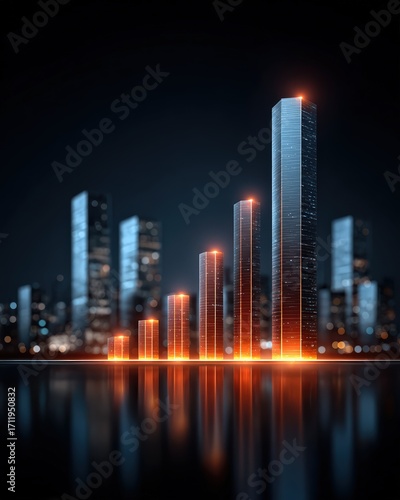 Fototapeta premium Futuristic City Skyline with Abstract Bar Graph Representing Growth and Success in a Digital Environment