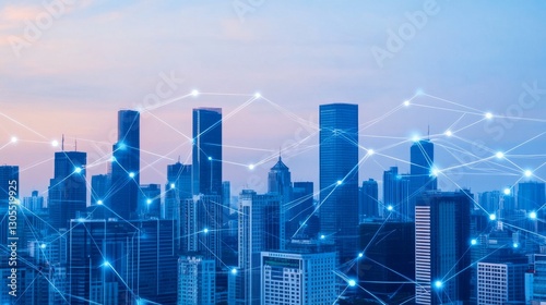 © LIPO@SEXTAO22, Obraz premium Futuristic city skyline with digital network.