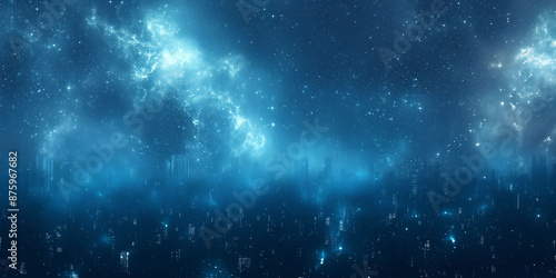 © HelgaQ, Fototapeta premium Futuristic city skyline with night sky universe stars concept