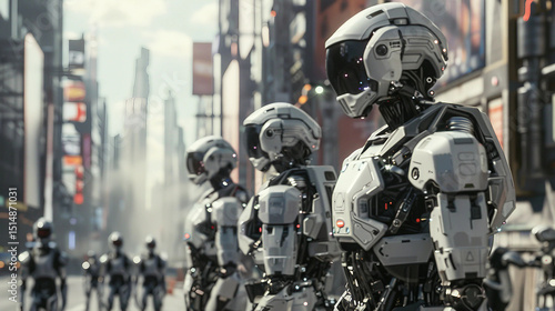 Fototapeta premium Futuristic City Under Watch by Robot Police