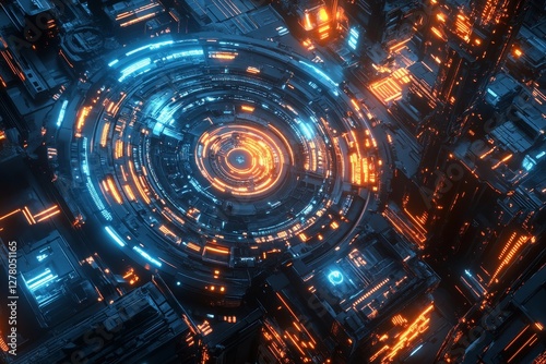 © Karla, Fototapeta premium futuristic city with circular glowing lights and technology.