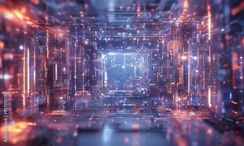 © Nipon, Fototapeta premium futuristic city with glowing lights