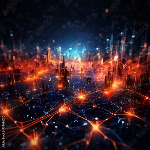 © Nipon, Obraz premium futuristic city with glowing lights and connections
