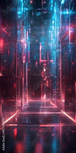 © Nipon, Fototapeta premium futuristic city with neon lights and dark floor