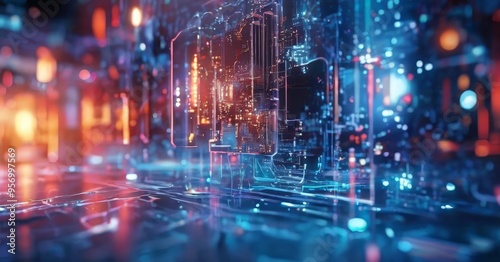 © Nipon, Fototapeta premium futuristic city with neon lights and lines