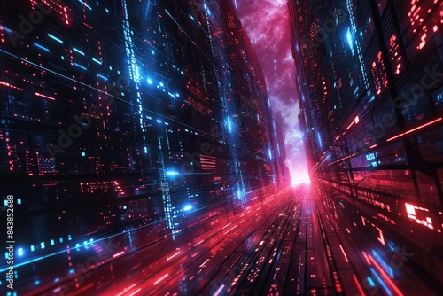© kramynina, Fototapeta premium Futuristic city with red and blue lights