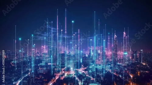 Fototapeta premium Futuristic Cityscape: A Symphony of Lights and Digital Connections