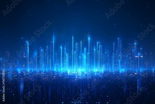 Fototapeta premium Futuristic Cityscape Aerial View at Night