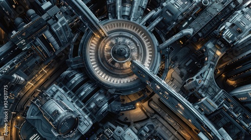 Obraz premium Futuristic Cityscape: Aerial View of a Sci-Fi Metropolis