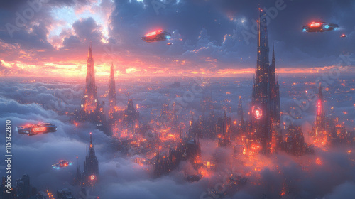 © Asree, Fototapeta premium Futuristic Cityscape at Night