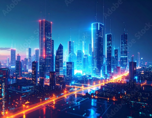© Roh, Fototapeta premium Futuristic cityscape at night
