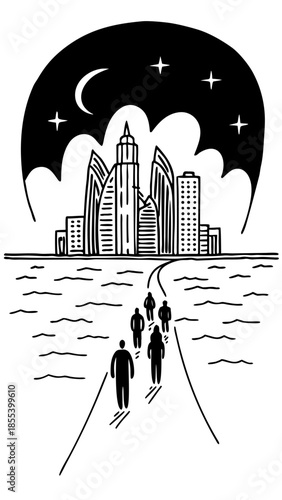 © Siham, Obraz premium Futuristic Cityscape at Night